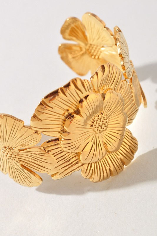 Peonies Flower Open Cuff Bracelet