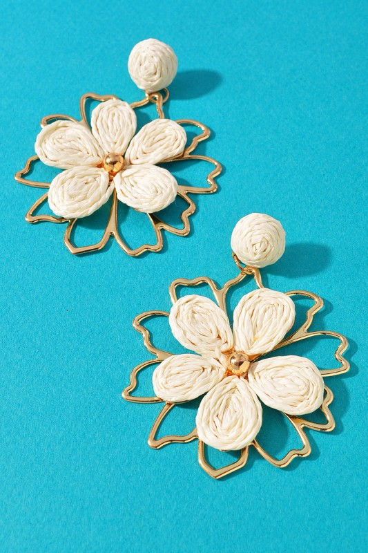 Sienna Raffia Bloom Drop Earrings - Ivory