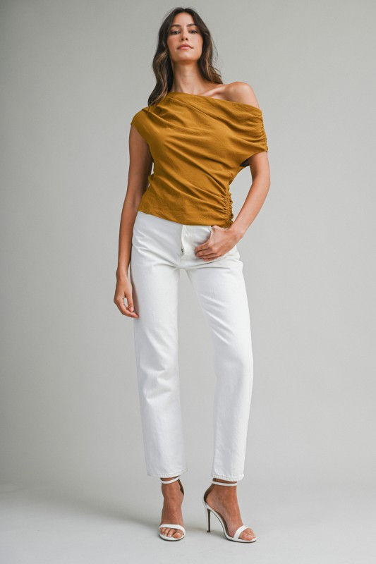 Halter Waist Cut Out Ruched Bodysuit Top - Mango